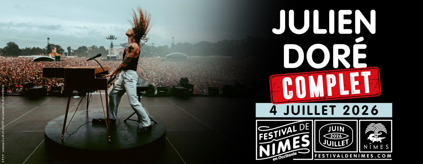 Le concert de JULIEN DORÉ prévu le Samedi 4 Juillet 2026 au FESTIVAL de NÎMES affiche désormais COMPLET !